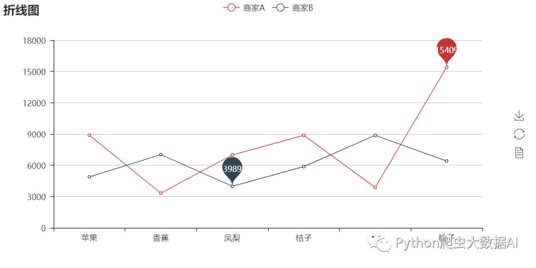 line.add('商家A', fruits, shop1_sales, mark_point=['max'])