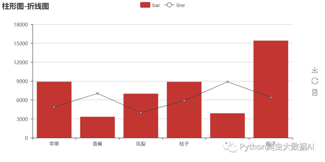 在柱状图上显示折线图也是常用的统计图表。需要借助Overlap类实现。