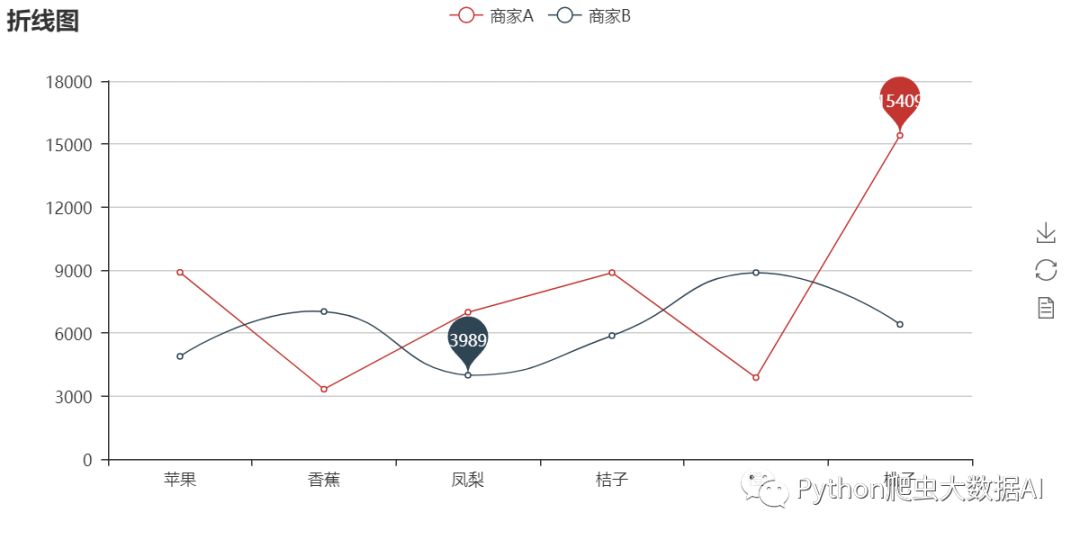 上图的商家A设置了is_smooth参数的值为True,商家B没有设置is_smooth属性。可以看到商家B的折线是以圆滑的趋势变化的。