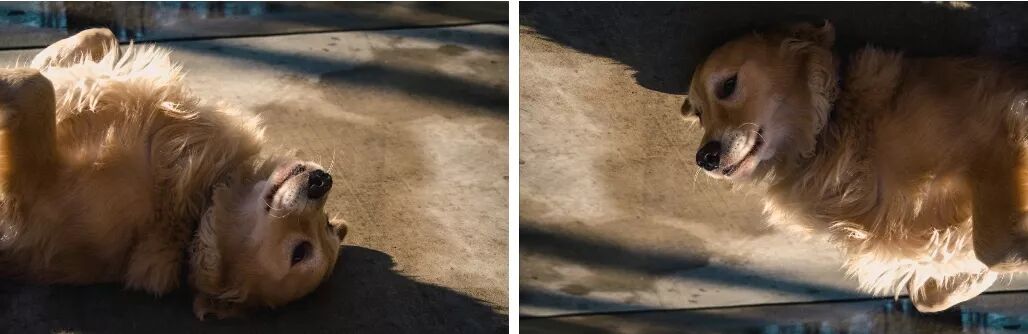 左图: 图片来自Pexels的Jonathan Meyer。右图: 进行180度旋转之后的狗狗。