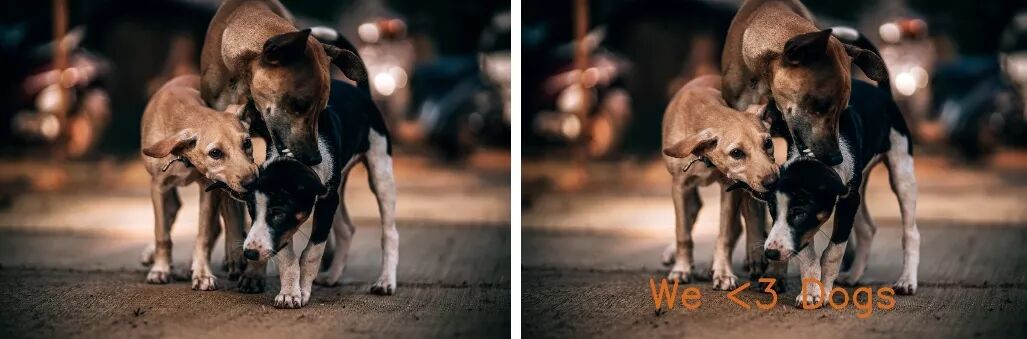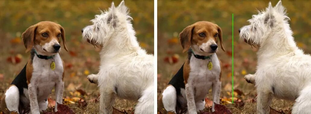 左图:图像来自Pixabay。右图:两只狗狗用一条线分开。