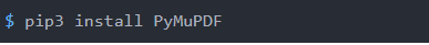 PyMuPDF可从PyPi网站获得,您可以在终端中使用以下命令安装包: