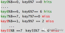 取模算法对缓存命中率的影响假设有 8 台服务器, 运行中,突然down 一台, 则求余的底数变成7后果: