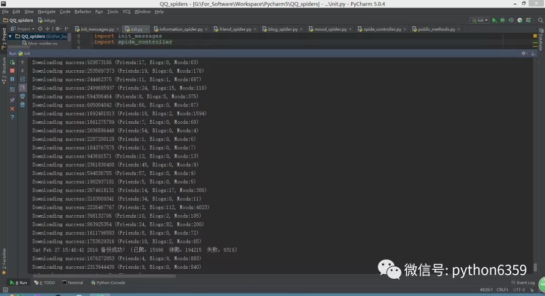 进入 init_messages.py 进行爬虫参数的配置,例如线程数量的多少、设置爬哪个时间段的日志,哪个时间段的说说,爬多少个说说备份一次等等。