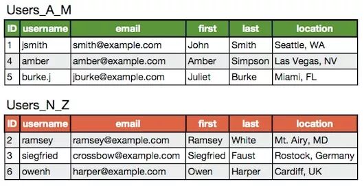 实际情况中往往会是垂直拆分和水平拆分的结合,即将 Users_A_MUsers_N_Z再拆成 UsersUserExtras,这样一共四张表