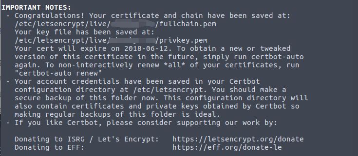 到了这一步后,大功告成!!! 证书存放在/etc/letsencrypt/live/xxx.com/里面